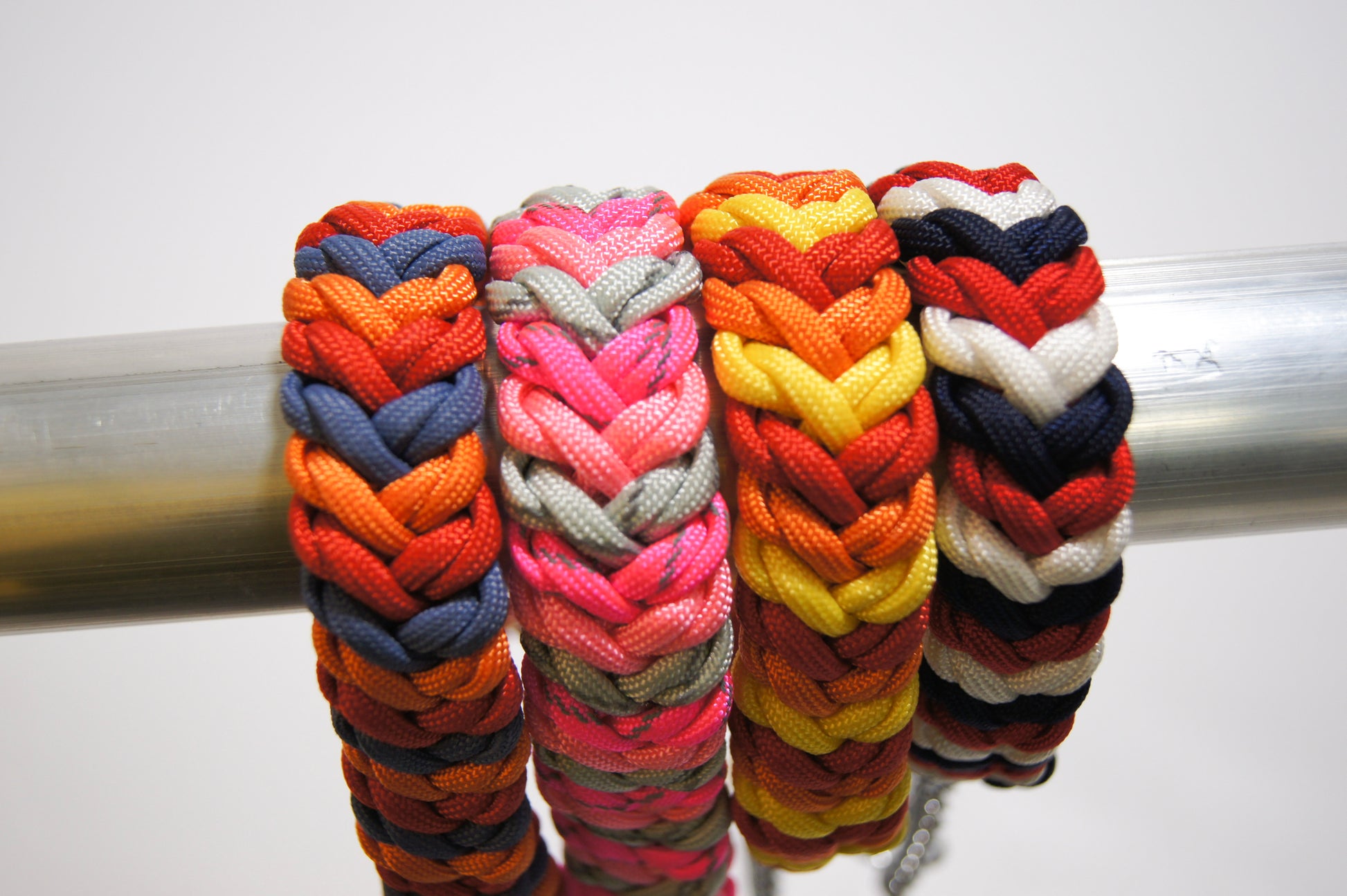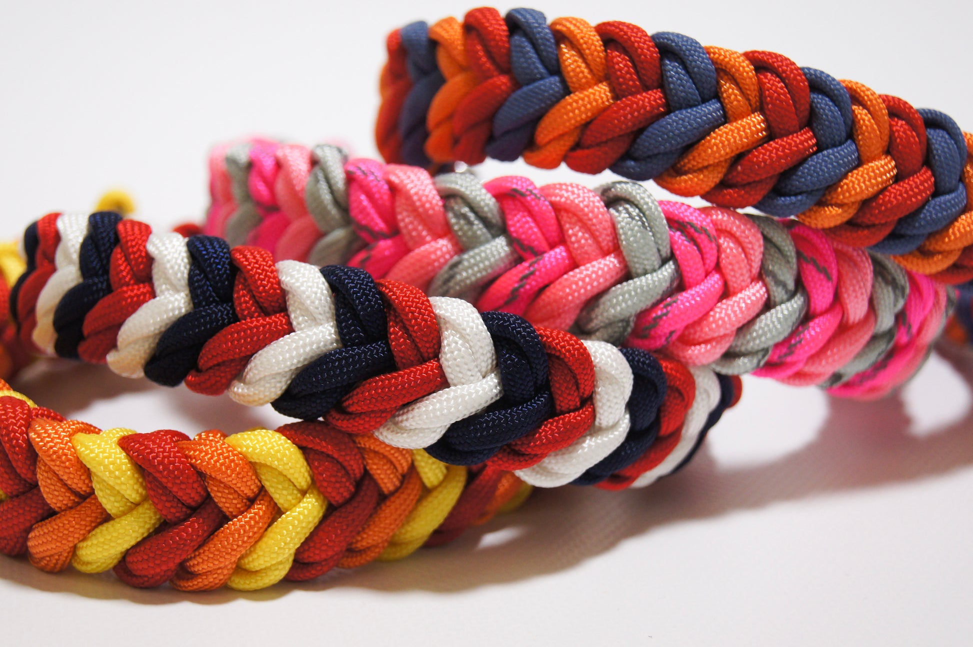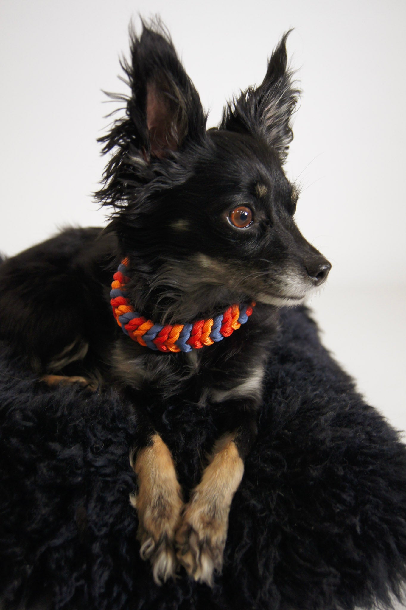 Dette er eit halsband fletta i paracord. Det er ganske tynt og passer derfor veldig godt til mindre hundar!