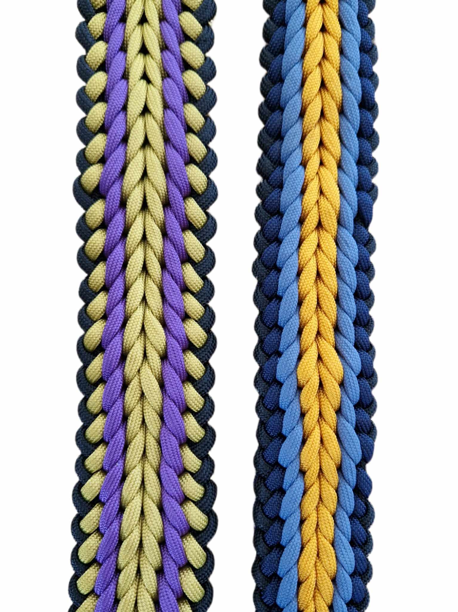 Mål kan variere litt utifrå om ein flettar veldig stramt eller litt lausare, om ein fletter stramt blir halsbandet hardare, smalare og tjukkare, medan om ein flettar lausare blir det breiare, litt mjukare og tynnare. Eg har lagt ved eit bilete for demonstrasjon av ulikheten, dersom du har eit spesifikt ønske, gjerne skriv det i kommentarfeltet.